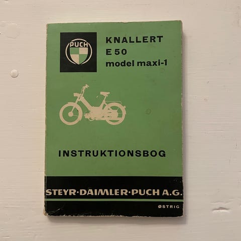 Puch Maxi K instruktionsbog, gammel type (1975) lidt patina.