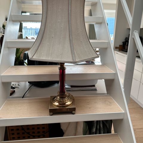 Gammel bordlampe med skærm i pap, som skal ligne læder. Virker fint , og lampefod er i fin stand, slidtage på skræm med hull på den ene side og en lille smule foroven, kig nøje på foto.