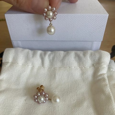 Smukke øreringe fra Sophie Bille Brahe, de hedder Bouclé Kelly. Jeg får dem desværre ikke får brugt. De er i 14 karat guld med Akoya perler. De måler ca. 4,5 i diameter. Nypris 15.000 kr.