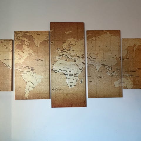 Verdenskort plade i metal og træ. Mega smuk med massere af detaljer! Den kan både bruges som bordplade eller som kunst til vægen