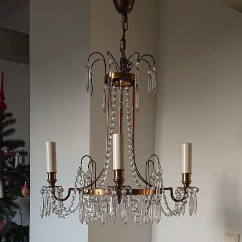 Lamperne vejer ca 3 kg stykket. Så de er ikke så tynge som antikke lysekroner.