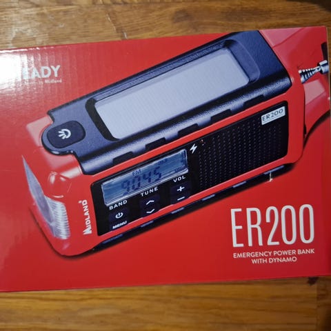 Med håndsving og lygte, usb, solpanel, radio.. perfekt til prepper skuret eller shelteret :)