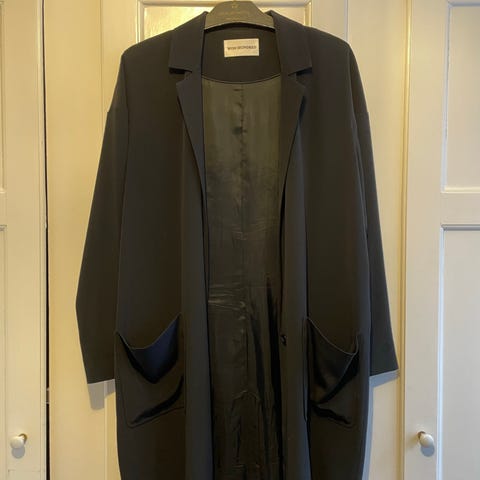 Længde målt midt bagpå under kravekant og ned ca 87,5 cm