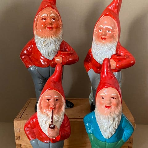 4 ældre nisser i ler til at hænge op