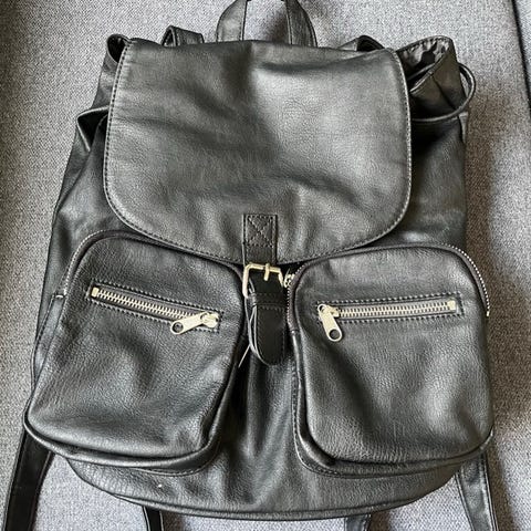 H&M rygsæk med stjerneprint i sort farve. Fremstillet af andre materialer. Designet til unisex brug. Rygsækken har justerbare skulderremme og en frontlomme med lynlås.