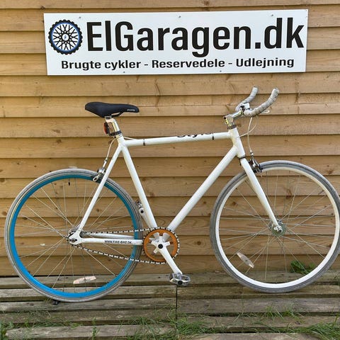 Lyseblå fixie. 1 gear. Kører fint. Passer til en person på cirka 176 cm.