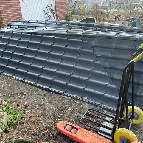 Sorte metal tagplader med filt under.