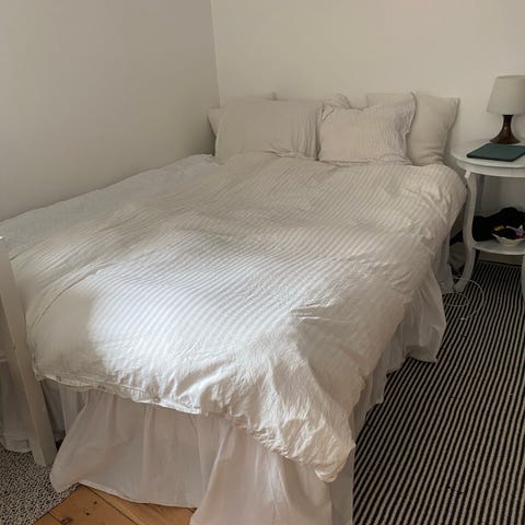 Boksmadras med tilhørende topmadras og ben fra røg og dyrefrit hjem