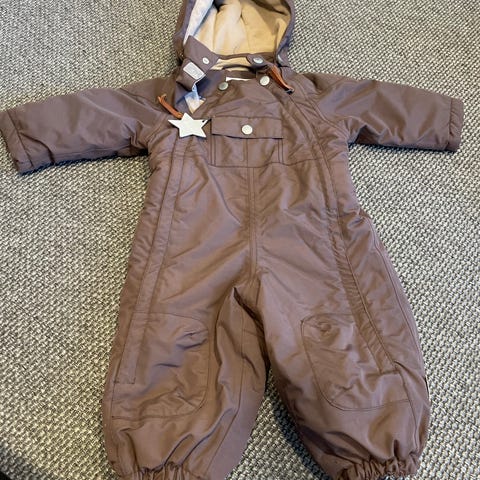 MINI A TURE flyverdragt i størrelse 68 til dreng. Dragten er designet til at holde barnet varmt og beskyttet mod kulde. Materialet er velegnet til udendørs brug og har elastiske kanter ved ben og ærmer for bedre pasform og komfort.