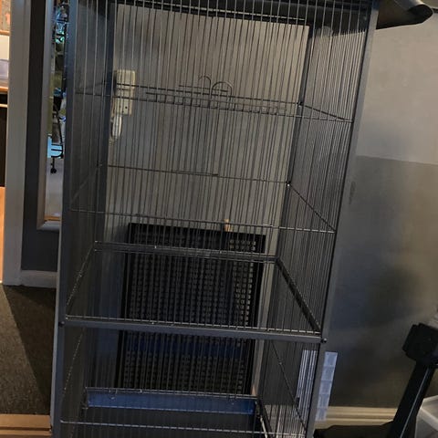 Fuglebur i metal med målene 35x26x33 cm. Buret er sort og har en foldbar funktion for nem opbevaring. Det har adgangsdøre til let fodring og adgang for fuglene.