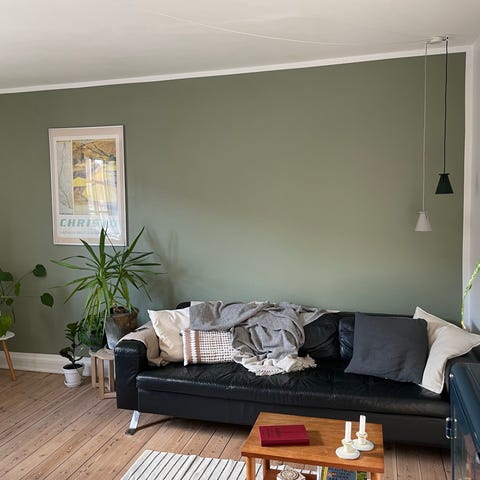 Flot grøn lædersofa - slidt i betrækket man sidder godt i den.