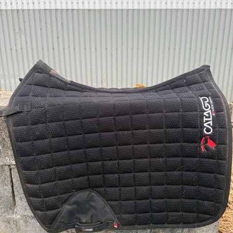 Hvidt dressurunderlag Catago Diamond, str. 17”med DV-logo i sølv