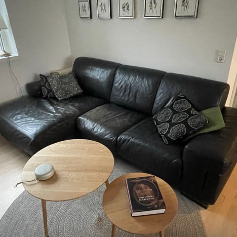 Natuzzi sofaen fejler intet udover en lille rids, som knap kan ses. Man sidder fantastisk i lædersofaen. Nypris var 17.700 kroner.