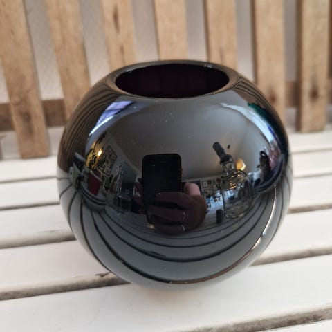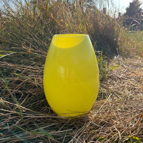 Meget smuk, slank vase i konisk form med dyb mørk blå trekant i foden..