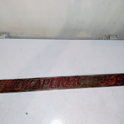 Skiltet måler 63 × 18,5 cm og stammer fra Nordsjælland – sandsynligvis en sejlbåd eller mindre kutter fra 1950’erne–1970’erne.