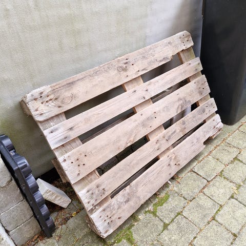 Til afhentning: En ældre Euro-palle, som har været brugt til at stable brænde på.