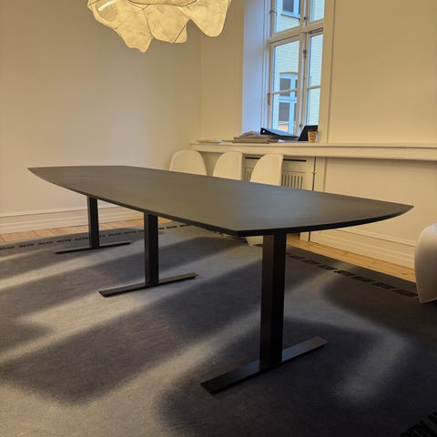 Designer konferencebord (Magnus Olesen) med 6 stole – kirsebærtræ og linoleum.