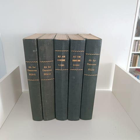 Alt for Damerne magasiner fra 1959 og 1960, udgaverne er nr. 40 (6. oktober 1959), nr. 48 (1. december 1959), nr. 23 (7. juni 1960) og nr. 30 (26. juli 1960). Magasinerne er retro dansk kultur og design, og indeholder artikler, opskrifter og billeder fra perioden.