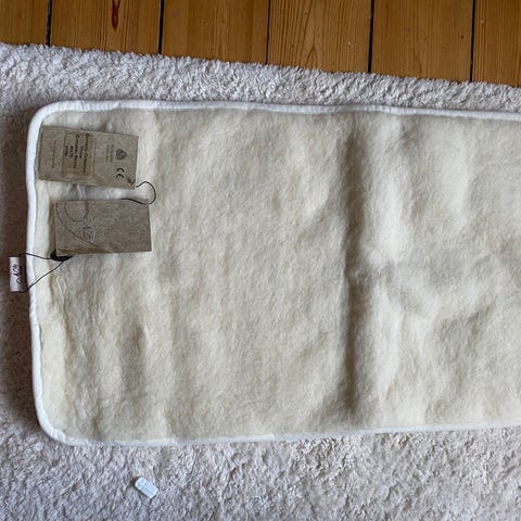 Madrasbetræk lavet af ren uld. Betrækket er designet til at give varme og komfort. Materialet er naturligt og velegnet til brug på en madras. Farven er lys, og produktet fremstår med enkelte brugsspor.