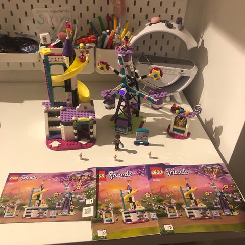 Legoæske pakket i fire poser lige til at samle igen efter vejledningen.