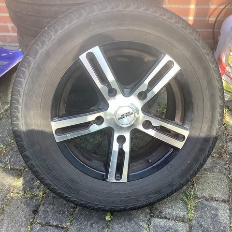 Komplette alufælge med helårsdæk med M+S mærkning så de kan bruges hele året