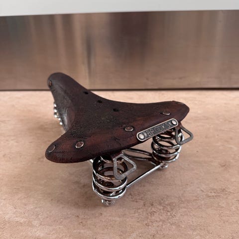 Sadlen er helt ny. Kun pakket ud, men den kan ikke sidde på min fine vintage 1950’er -cykel 😔 (Det KAN selvfølgelig ordnes, men jeg fornemmer efterhånden, at det ikke kommer til at ske 🙄). Nypris: 1049 kr.