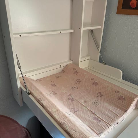 Solidt væghængt puslebord med fine detaljer. Massivt træ.