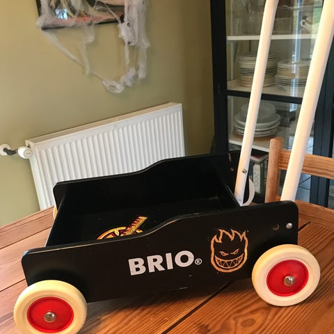 Super gåvogn, der er brugt til to børn. Med brugsspor (se billede), men der er stadig mange timers leg og gå-træning i vognen