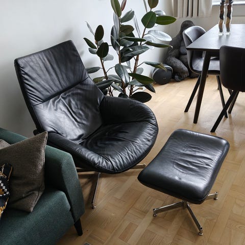 Man kan skyde rygge tilbage. Der medfølger fodskammel som passer til