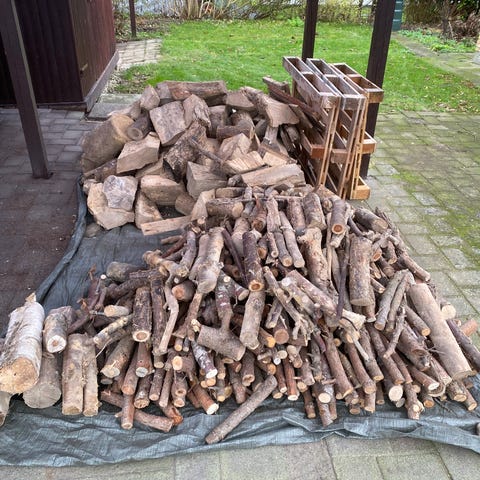 Flækket brænde. Trillebør følger ikke med🙂 tag en ikeapose ellet to med.