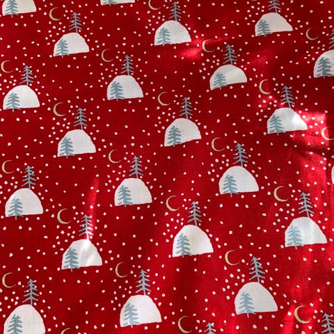Sød Juledug fra Sødahl med igloer og grantræer på hvid bund. Stand fin uden pletter.
