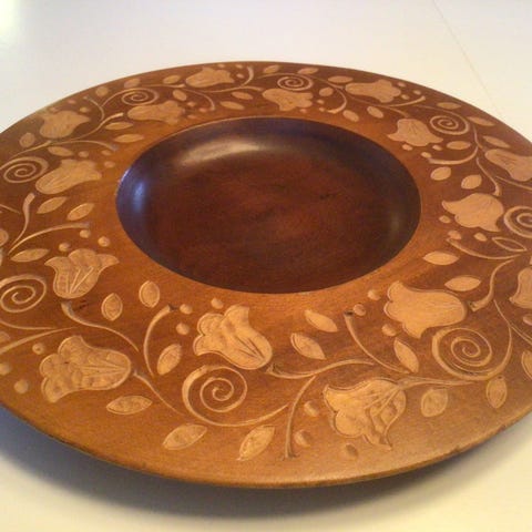 Smuk gammelt fad i mørkt træ. Perfekt til frugt eller brød fx