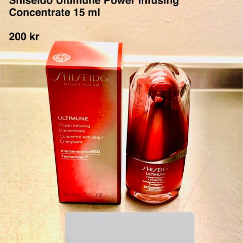 Ny Shiseido Ultimune Power Infusing Concentrate er en hudplejeprodukt i en 50 ml tube med rød emballage. Produktet er designet til at styrke og beskytte huden samt reducere tegn på aldring. Indeholder en formel, der hjælper med at forbedre hudens modstandskraft og fremme en sundere hudbarriere.