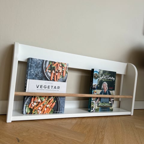 MamaMia stemning. God til fremvisning af kogebøger, tallerkner lækkert legetøj og bøger. Ren retro idyl.