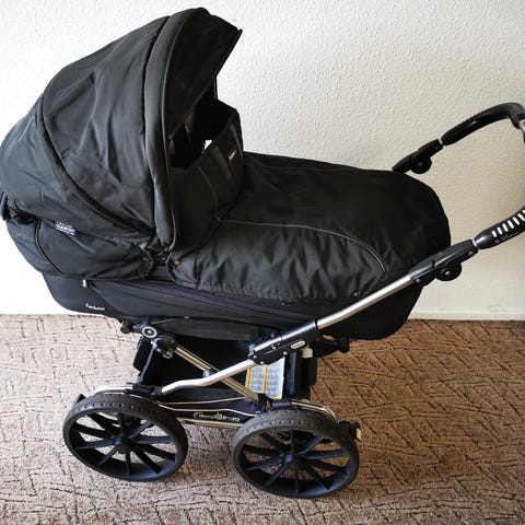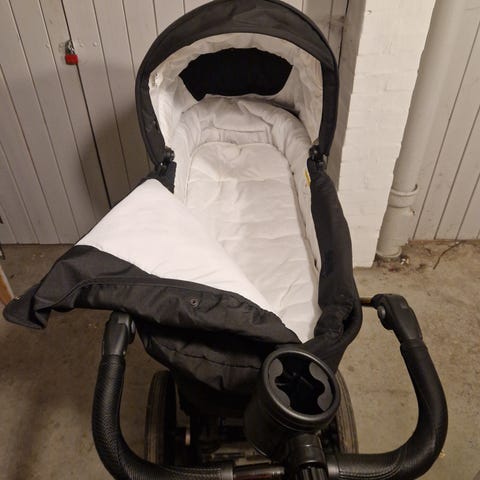 Emmaljunga barnevogn med drejehjul. Liggemål 97 cm.
