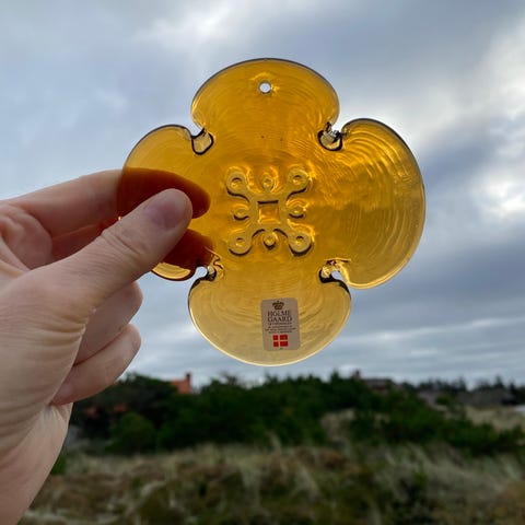 Smuk ældre rød solfanger, designet af Michael Bang for Kastrup Glasværk.