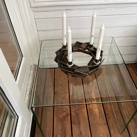 Kan bruges som sidebord, sofabord eller lignende. Lampen er ikke til salg.