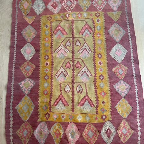 Jeg sælger dette unikke afghanske kelim-tæppe, som er håndlavet i høj kvalitet.
