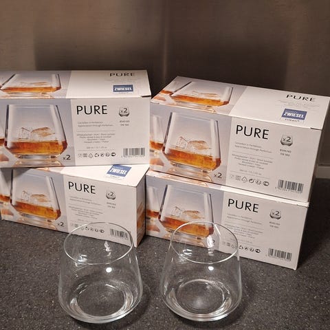 8 glas. Alle glassene har været vasket af, men har bare stået i et vitrineskab.