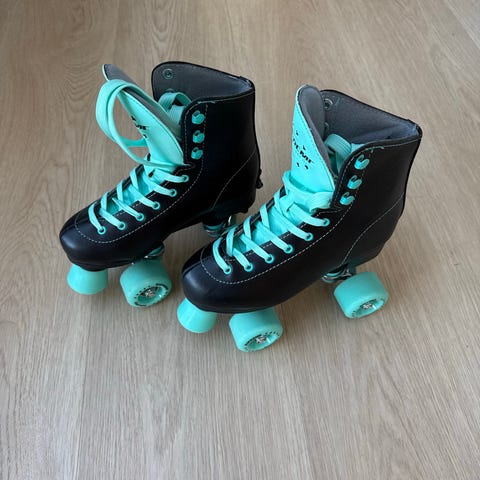 Supreme Rulleskøjter i børnestørrelse 40. Farven er sort med lilla detaljer. Rulleskøjterne er designet til børn og inkluderer justerbare stropper for sikker pasform. Materialet består af en kombination af hård plastik og tekstil for komfort og holdbarhed. Produktet leveres med ekstra tilbehør og original emballage.
