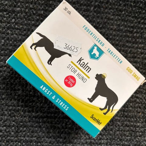 Kalm - til hunde mod angst og uro - nypris over 500kr. Har desuden en halv flaske som følger gratis med.