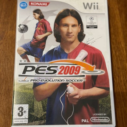 Konami PES 2009 Pro Evolution Soccer Nintendo Wii spil. Sportsspil med fodboldtema, der tilbyder singleplayer og multiplayer funktioner. Spillet indeholder opdaterede hold og spillere, og understøtter online spil. Egnet til aldersgruppen 3 år og op.
