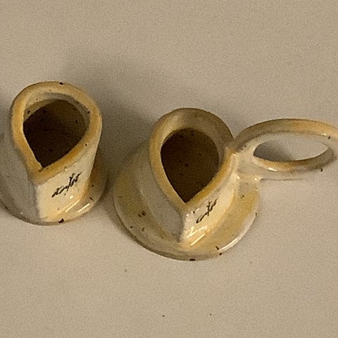 2 lysestager som er fremstillet på bestilling hos Kvindesmedien på Christiania. De er 119 cm høje og 11,5 cm i diameter i skålen. De er oprindelig lavet for at stå i en udestue. De sælges samlet og prisen er for begge 2.