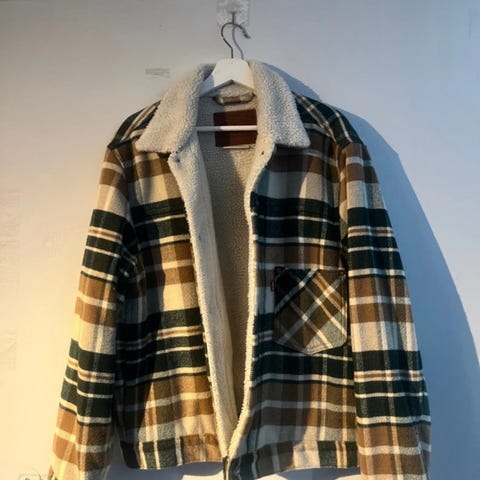 Lækker sort/grå jakke med flot detalje på ryggen.