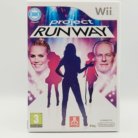 Project Runway Nintendo Wii spil. Spillet er baseret på reality-tv-serien Project Runway og inkluderer funktioner som design og modeudfordringer, hvor spilleren kan skabe tøj og deltage i modeshows. Passer til Nintendo Wii konsollen.