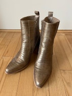 Støvletter, str. 39, Erynn Paris , Gyldne, Kunstlæder, Ubrugt, Brugt én gang - for høje til mig.