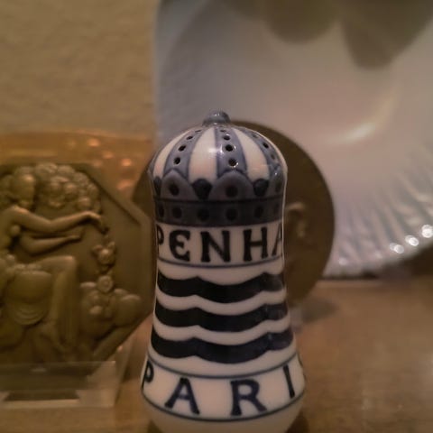 Royal Copenhagen - musselmalet peberbøsse fra Verdensudstillingen i Paris 1900