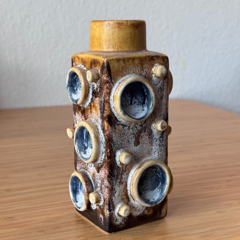 Keramikvase. Strehla Keramik 9022 ? Højde ca. 10 cm. Diameter hul ca. 2,8 cm
