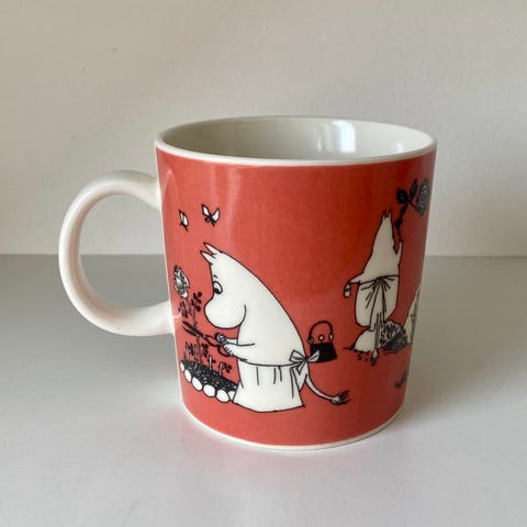 4 styk krus, 2 tallerkener, 1 dyb tallerken, bestik medfølger.