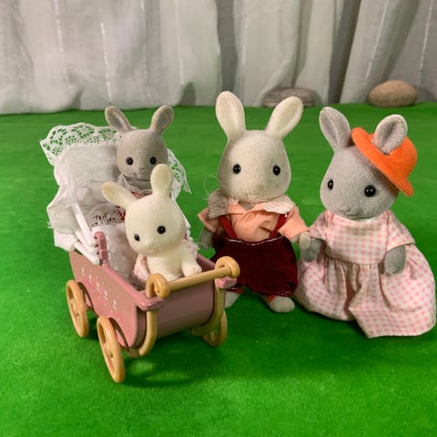 Sylvanian Families, kanin plus lidt møbler. Fra 1985.
